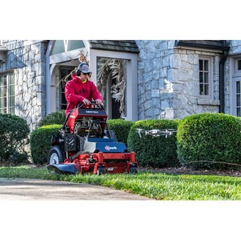 The design of the Vertex E-Series places the operator low, between the drive wheels on a suspended operator platform to increase balance, stability, and control. The wide-open standing viewpoint provides maximum visibility, and the dual-action controls offer heightened maneuverability. A single-point cut height adjustment system quickly and accurately sets deck height from 1.0- to 4.5-inches, in .25-inch increments.