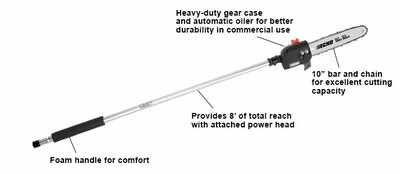 The PPT-2620 Power Pruner® pole saw with loop handle features a telescoping shaft able to reach more than 12 feet. With an ergonomic...