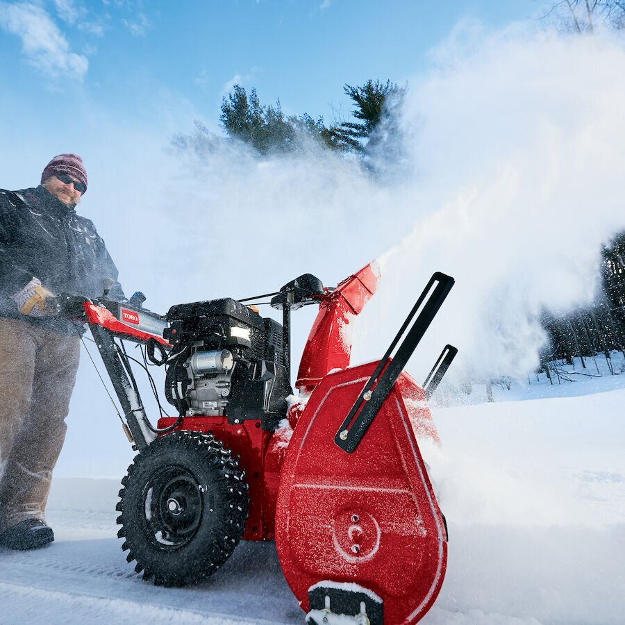 Handle deep snow with ease with the Power Max® HD 1428 OHXE with 420cc Toro Premium 4-cycle OHV engine. A 28-inch clearing width and 21-inch intake height with drift breakers can plow through the deepest snow and blow it up to 60 feet. Ideal for concrete, asphalt and gravel surfaces. The innovative Quick Stick control allows you to quickly and easily change chute direction and chute deflector with a single, smooth motion. Convenient 1-hand operation levers allows the other hand to change speeds or the chute control without stopping. Smooth, tight turns are a snap with self-propelled power steering. This machine also has handle-mounted triggers that allow you to disengage 1 or both wheels to maneuver through sharp turns with ease. Hand warmers and headlights are standard as is the exclusive Anti-Clogging System which reduces clogging and maximize clearing efficiency. No shear pins needed. Equipped with Hardened Gears™ and commercial-grade auger gearbox. Backed by Toro's 3-year limited warranty