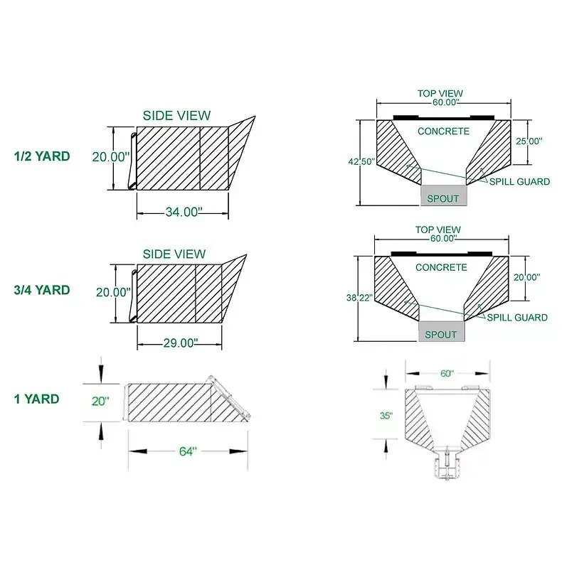 Our concrete bucket is designed for carrying and placing concrete using your skid steer. It allows you to accurately place concrete in areas inaccessible to trucks without any waste. A hydraulic gate is optional.