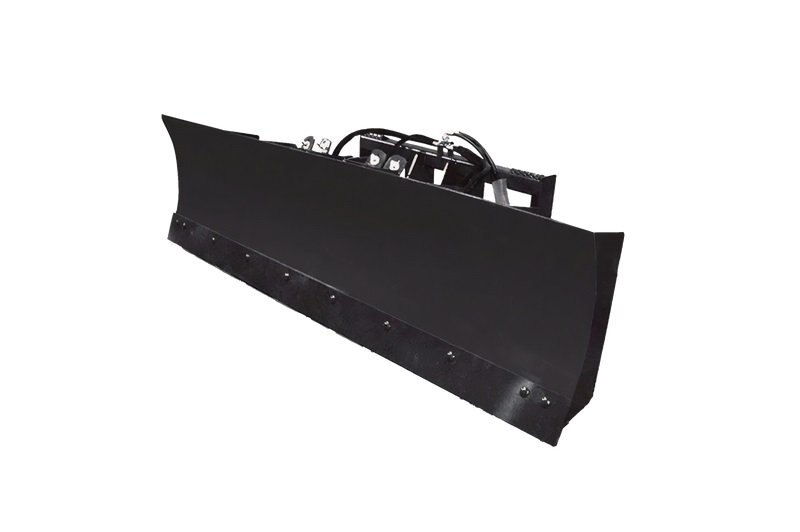 Our Multi-Purpose Angle Blade is unique and versatile. It is designed to function both as a snow plow and an angle blade with ease. To use it as a snow plow, simply remove the center pin, allowing the blade to tip when hitting an obstacle. Powerful springs retract the blade into position once the object is cleared. To use it as an angle blade, leave the center pins in place, and you’re ready to move earth. This 4-way dozer blade allows up and down movement from your skid steer and side-to-side movement from the attachment. It features 1/2″ thick, 6″ wide replaceable bolt-on cutting edges, and comes equipped with two 3″ bore, 6″ stroke cylinders, couplings, and hoses, ready for use on delivery.