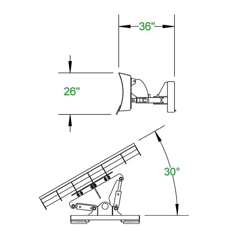 Our Multi-Purpose Angle Blade is unique and versatile. It is designed to function both as a snow plow and an angle blade with ease. To use it as a snow plow, simply remove the center pin, allowing the blade to tip when hitting an obstacle. Powerful springs retract the blade into position once the object is cleared. To use it as an angle blade, leave the center pins in place, and you’re ready to move earth. This 4-way dozer blade allows up and down movement from your skid steer and side-to-side movement from the attachment. It features 1/2″ thick, 6″ wide replaceable bolt-on cutting edges, and comes equipped with two 3″ bore, 6″ stroke cylinders, couplings, and hoses, ready for use on delivery.