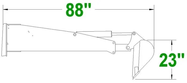 Our X-treme Stiff Arm Backhoe is an excellent tool for digging ditches, removing stumps, and digging footings. You can add a thumb to move logs, chunks of cement, and more. Buckets are available in sizes of 8″, 12″, 16″, 20″, and 24″, powered by an American-made 3″ x 16″ cylinder. With a 7′ digging depth and 14,000 lbs. of ripping force, this backhoe is an aggressive digging machine.