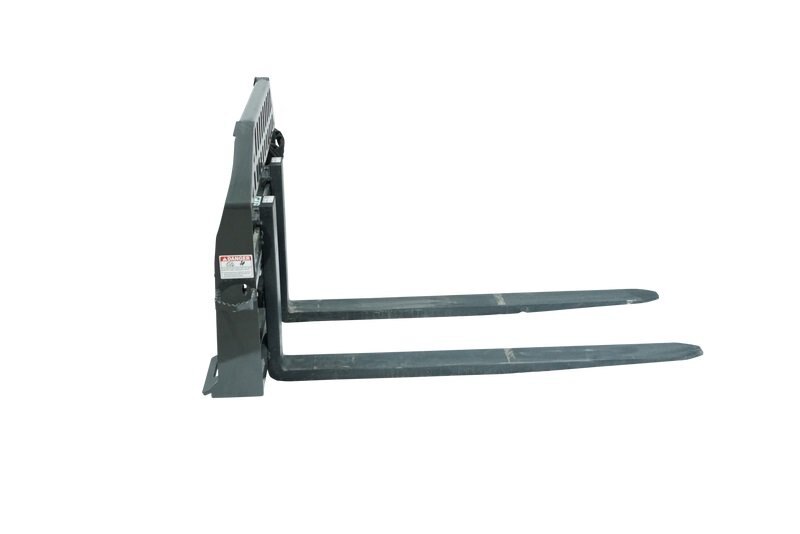 Anyone that owns a skid steer should have a set of forks on hand. Forks are ideal for lifting pallets, loading lumber or just about anything else. Our forks are completely heat treated and rated to carry 8,500 lbs. We put a step on both sides of our frames so the operator can easily climb into the cab. We offer a large variety of ranges included here such as heavy duty, walk-thru, JD, fork grapple, hydraulic heavy duty, etc. Euro Style, John Deere, and other mounts available. Generally speaking: Tine sizes range from: 36-96″ largly depending on weight rating, and size of the frame you buy.