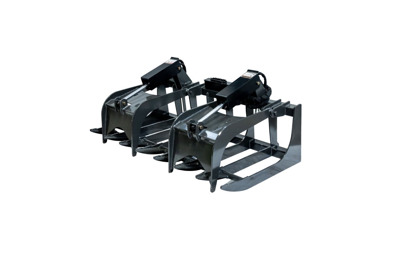 Our root grapples are a necessity in the tree industry, and for contractors clearing lots for home site building. They are ideal for moving logs, brush, rocks or just about any type of debris, which makes them essential tools for storm damage clean up. All of our units are built from top quality steel and will exceed the lifting capacity of the skid steer machines they are used on. Our grapples feature independently operated cylinder(s) to adjust uneven loads. They also feature grease fittings at every pivot point, and commonly come with rod covers which is a must have. This unit is rated for 45HP and under, has 2×10 cylinders, hydraulic lines routed inside the frame for protection, has 3/8″ steel plate on top and bottom and is built with 3″ square tubing.