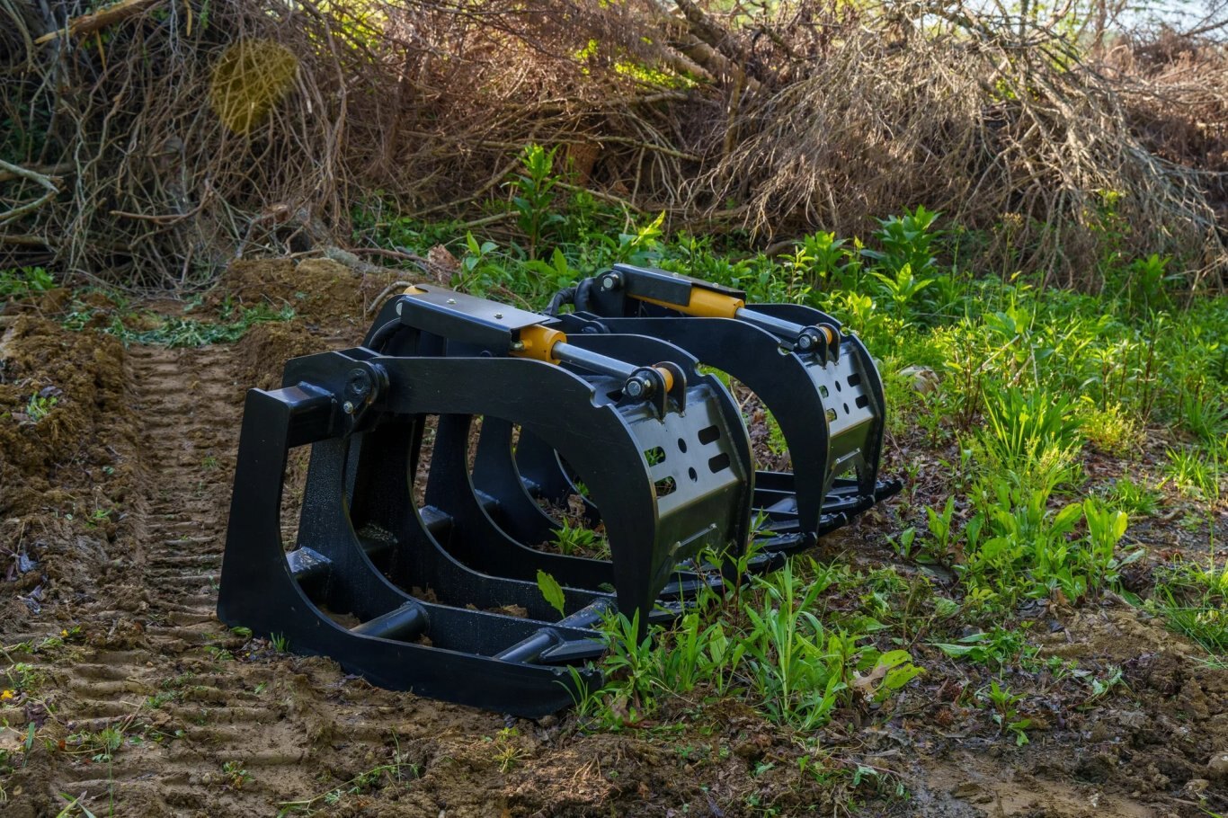 The Severe Root Grapple is constructed for machines over 80 HP, featuring strength and durability like no other. It handles more material, weight, and power than our other grapples. The Severe Root Grapple features 1/2″ continuous bottom tines, 3/4″ top tines, and a frame constructed with 4″ square tubing. It also includes enclosed hydraulic cylinders and shafts for added protection. The rod and cylinder covers come standard, with diamond plating giving it a tough, durable look. This grapple can effortlessly pick up heavy logs and large amounts of debris, making it perfect for big storm cleanups and natural disasters.